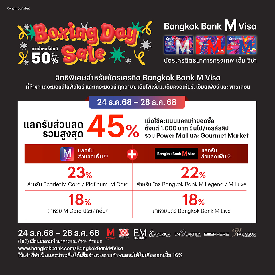 Accumulate M Points with every purchase at The Mall, Emporium, EmQuartier, and EmSphere, as well as at supermarkets.