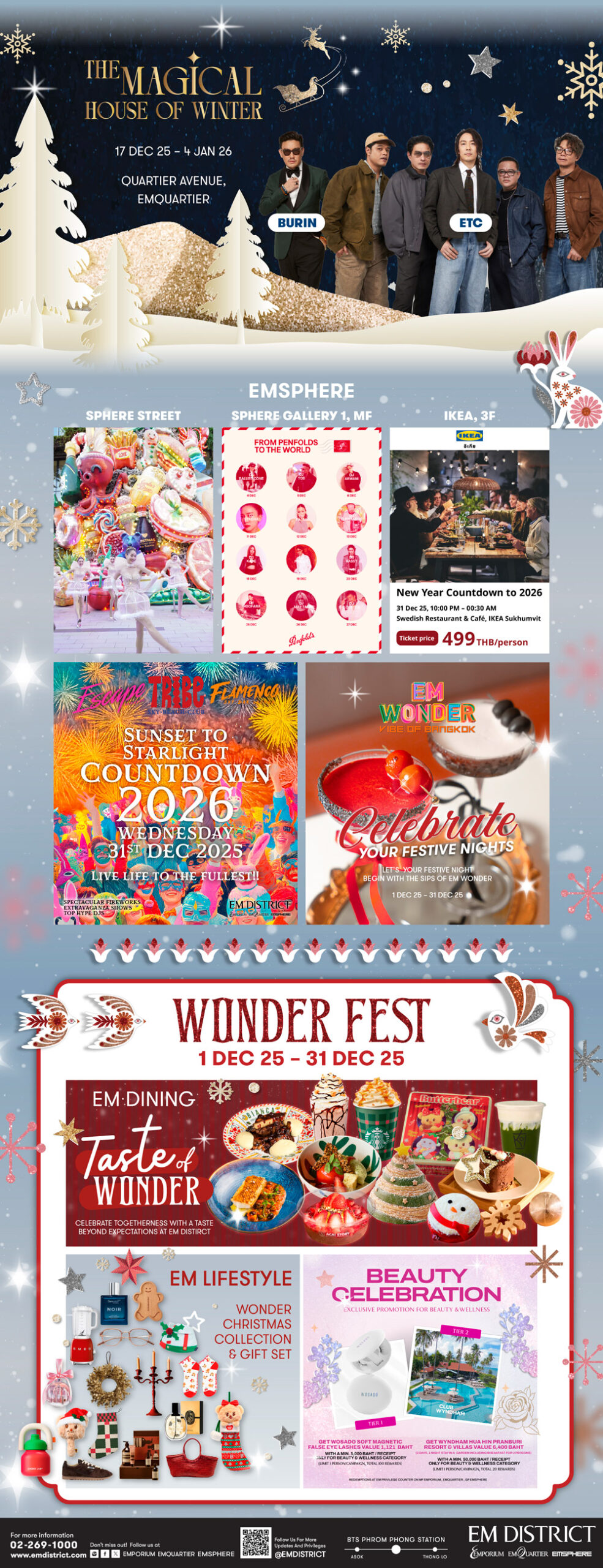 รวมถึง EMSPHERE บริเวณ SPHERE STREET และ EM WONDER ที่จะจัดเต็มปาร์ตี้ค่ำคืนส่งท้ายปี