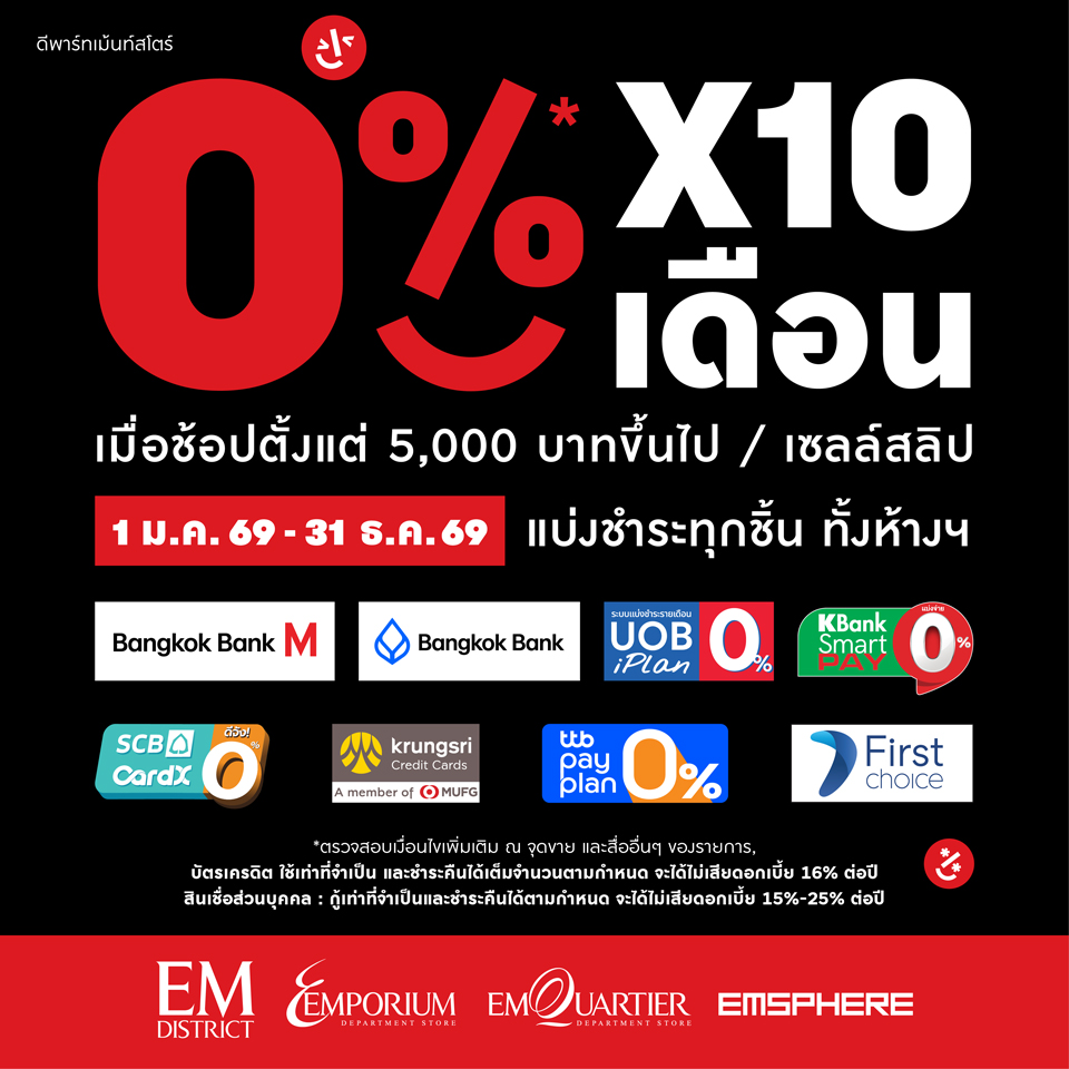 แบ่งชำระทุกชิ้น ทั้งห้างฯ 0% X 10 เดือน