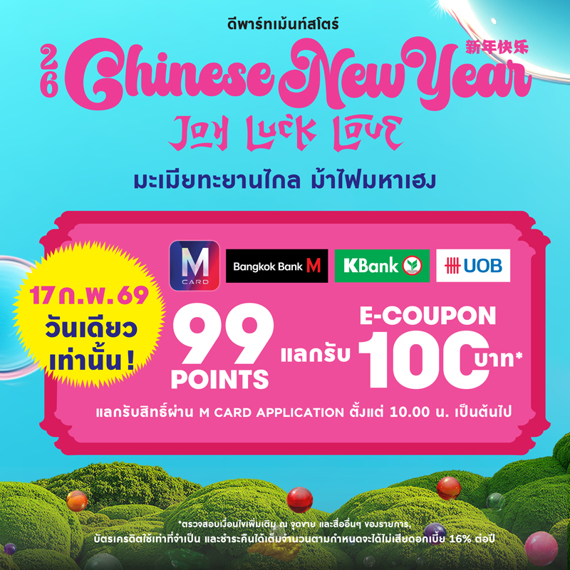 - 17 ก.พ. 69 วันเดียวเท่านั้น 99 POINTS แลกรับ E-COUPON 100 บาท*