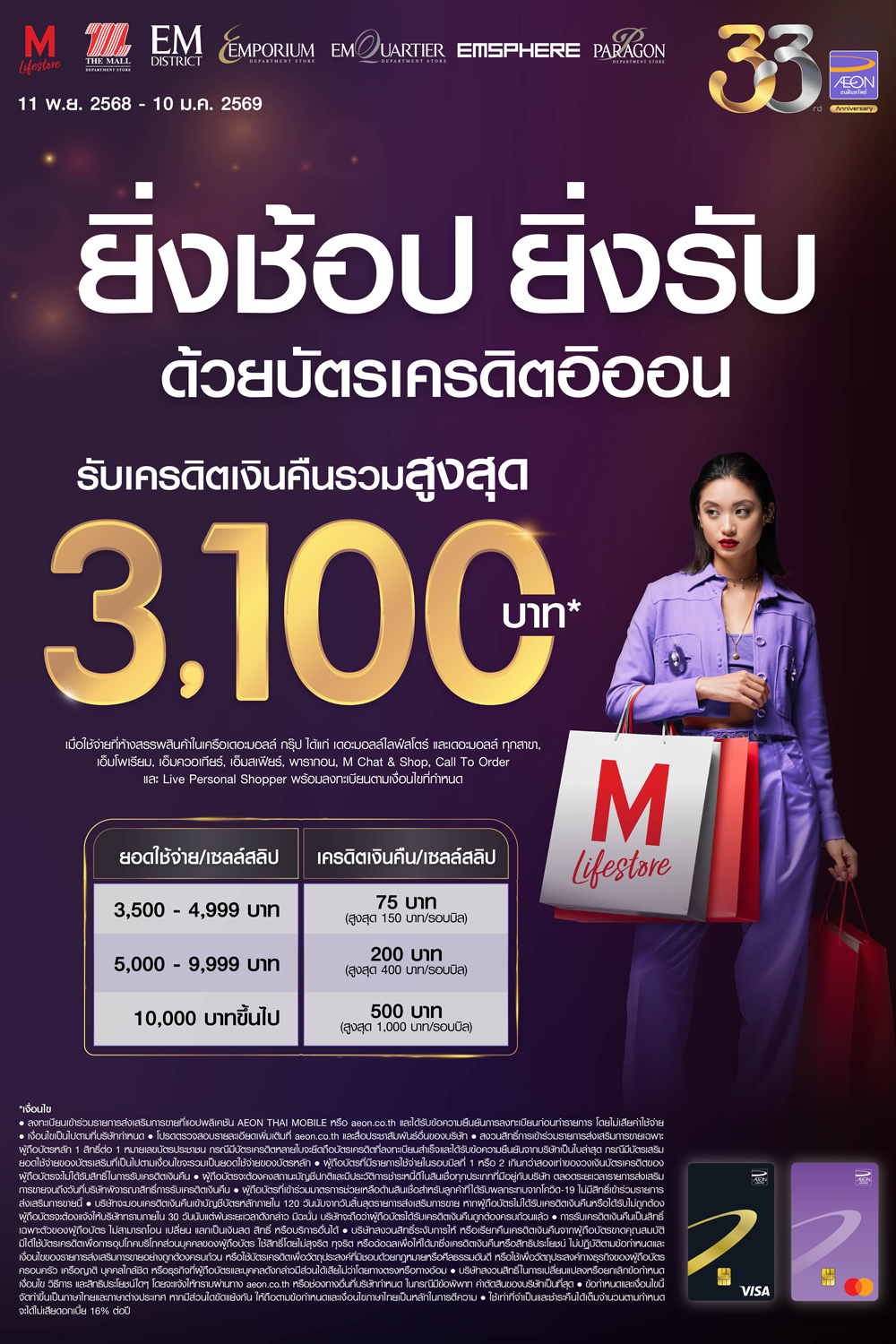 บัตรเครดิต AEON รับเครดิตเงินคืนรวมสูงสุด 3,100 บาท